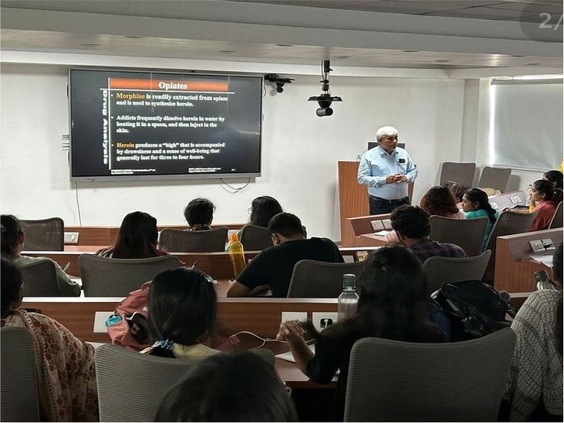 Dr. Amar Pal Singh, Assistant Director (Chemistry) at the Forensic Science Laboratory, Delhi, shared his expertise with our students, shedding light on the scientific specifications, characteristic features, and practical challenges associated with drug analysis.